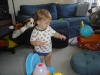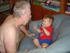 Description: Maria (Lanny and Diana's, aka The Grandparents', former housekeeper) and her husband Pedro came to visit this week. We also attended the Neopets Company Picnic at Griffith Park, and a birthday party for Scott and Ollie at Adam and Donna's new house afterward, where Donovan learned about the Dark Side of the Force. Donovan got better at drinking water from a cup (or from anything, for that matter), and practiced throwing and catching a lot.