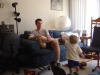 Description: This week, we went to Jacob Russin's 3rd Birthday party, where Donovan had a splash in the pool. We also discovered that the hallway outside our apartment is good for at least 30 minutes of solid entertainment, and that investment counseling is not terribly entertaining. Donovan and Monica attended the Music 4 Us class at the Y for the first time too, and learned about hula hoops (among other things). Dinners out at Hamburger Mary's and Ajisai rounded out the week.