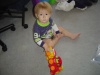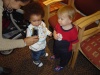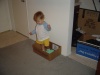 very attached to his Grandpa Lanny, who he calls "Papa." He cries when he has to leave his arms! We went over to Grandma and Grandpa Waggoner's apartment for dinner this week, and as we drove up to the building, Donovan recognized it and said "Papa!" He's also getting more interested in repeating words, and will imitate Matt saying "Oh boy!" The other day, he actually asked to get down out of Monica's arms by saying "Dow dow dow!" but hasn't repeated that feat.