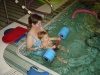 The swim lesson was not as thrilling as we'd expected. Donovan seemed put off by the environment, and repeatedly wanted to get out of the pool and be picked up by Daddy, who was watching from the deck. This led to Daddy's shirt getting very wet. From now on, both parents wear swimsuits.