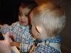 Description: Neopets has their annual Christmas Party at CEO Doug Dohring's house. Much tasty food is provided, as well as presents for all the kids (courtesy of a real live Santa). We got Donovan his first (professional) haircut earlier in the day, and dressed him up all cute. He had a lot of fun climbing up and down the stairs to the gazebo in the back.