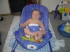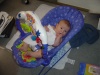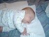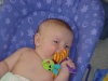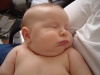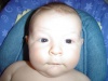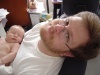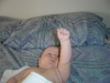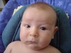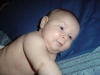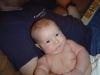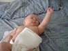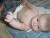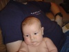 Description: Lots of photos this week, because Donovan was just so incredibly cute all the time. He likes to try and climb daddy's tummy, and also discovered his left hand. He would lie on his back, holding his hand up in front of him, just staring at it. Strange. He's also getting better at grabbing and holding things.