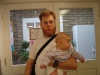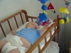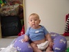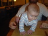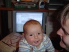 Description: Monica took Donovan to Shana's baby shower. Shana is another of her classmates and is due in mid-November. Monica's dad's friend Glen Benton also came down from the Bay Area to visit, and they went to lunch with Monica's mom. We took Donovan to IHOP one night, and this was also the week that Matt's dad bought us a video camera, so we can now record hours and hours of Donovan lying around and flailing his arms. Well, it'll be more useful when he's older and can move around on his own and stuff. :)