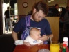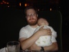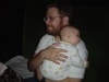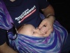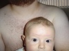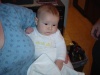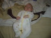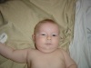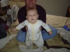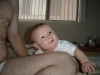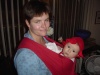 Description: Donovan is getting better at standing up on his own -- he can now support himself for up to three whole seconds at a time, before he collapses into a babylike heap. (When he was younger, around 2 weeks old, he could hold himself up for maybe half a second.) Monica also took him to a baby-wearing class, where she learned more about how to carry your baby around without the use of a stroller.