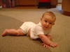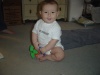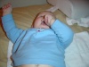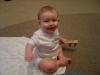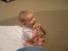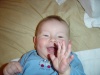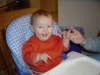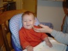 Description: Donovan got his first taste of real food this week, as we tried to feed him some avocado on his six-month birthday. He ate it all, albeit with some fuss, and then managed to throw it all up about two minutes after he finished. Yay!