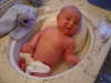 Description: A relatively few photos this week, as not much interesting happened. By this point we'd more or less gotten used to dealing with a squalling baby waking us up at 2, 4, and 6 in the morning. Donovan's umbilical cord did finally heal this week, so he had his first real bath.