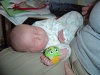 Description: More random photos as the boy grows larger. Our friend Alexandra Clement came to visit Donovan this week. He also had an unattractive but apparently non-annoying rash, which was probably a combination of baby acne and heat rash.