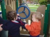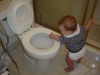 Description: We took Donovan to West Hollywood Park to play a bit on Sunday. Monica's friend and former classmate Amy Ford came over for dinner later in the week. Donovan also learned how to climb more things, and what happens when you pull that little metal lever on a toilet.
