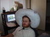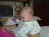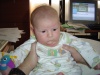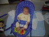 Description: Yet more random photos. We'd discovered that taking Donovan to a movie each week was actually a good idea -- we'd go to an early matinee with very few people, and Donovan would usually fall asleep during the film, no matter how loud. In fact, the louder the better. The Mann Chinese 6 is great for this, because the theaters all have a back row (which still lets you see everything fine) that has a wide aisle in front of it, which is great for carrying Donovan back and forth without getting in anyone's way. We also got a Kick & Play bouncy seat that allows Donovan to trigger sound effects by kicking his feet. It also vibrates and rocks back and forth on springy tubes.