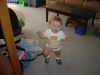 Description: Donovan can now walk! As long as no obstacles get in his way, the floor surface is even, and he doesn't get distracted or try to turn around too quickly, he can walk an arbitrary distance. This was amply demonstrated at Today Studio City, where he toddled all over the restaurant, frequently in pursuit of a 2-year-old girl who did not take especially kindly to when he grabbed her hair. Besides that, not much happened this week.