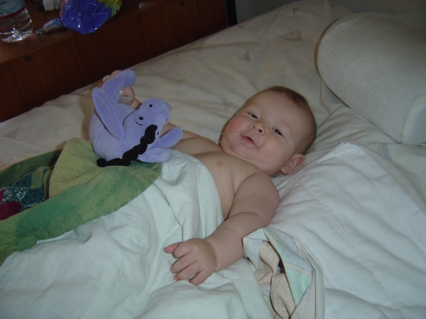 Donovan also really likes his Eeyore toy, because it has bells inside and rings when he shakes it. Yay!