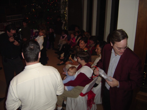 Waiting for Santa to start giving out presents, Donovan gets his picture taken.