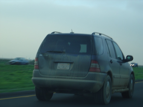 Look closely... yes, the mud-covered SUV is actually a Mercedes.