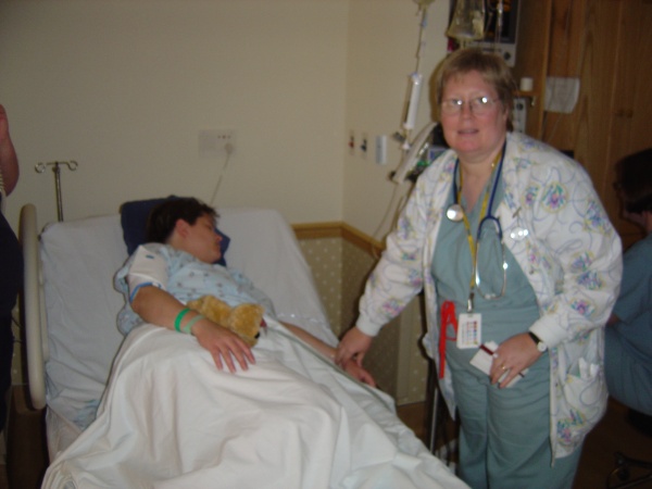 Nothing photo-worthy for the next several hours. Then we got moved to another room, Labor/Delivery 1, where we were attended by a new nurse (our fourth by that point), Helen.