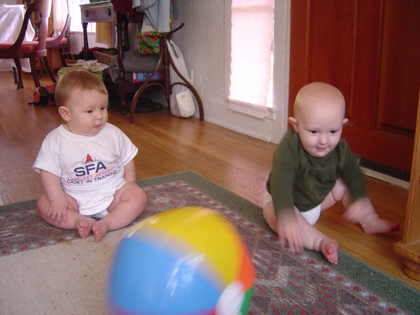 Donovan watches carefully and tries to learn how Kieran made the pretty ball go zoom.