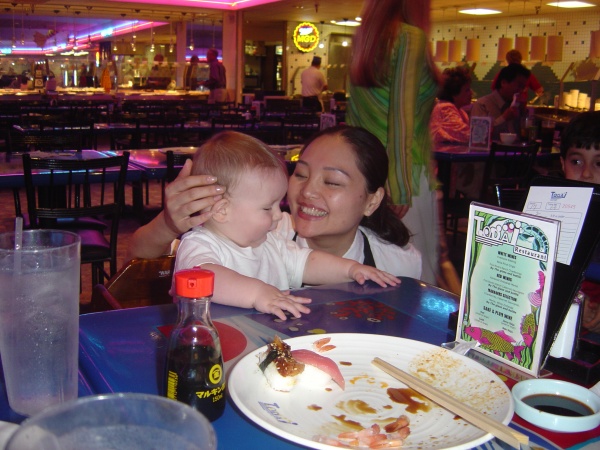 Donovan gets some admiration from Pooh, a waitress at Todai in Glendale. (Not shown: her colleague Mint, who also admired the baby.)