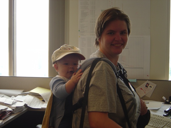 Comments: Monica and Donovan visit Monica's former co-workers at MTA's Westside Area Planning Team. Tom decided to put a University of Texas hat on Donovan, thoroughly scandalizing grandma in absentia (since she was a Sooner).