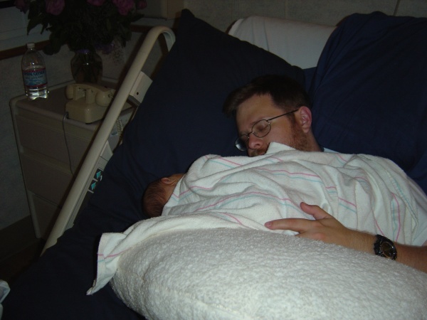 Daddy sleeps with Donovan across his chest. Monica surreptitiously took these three photos while Matt was asleep.