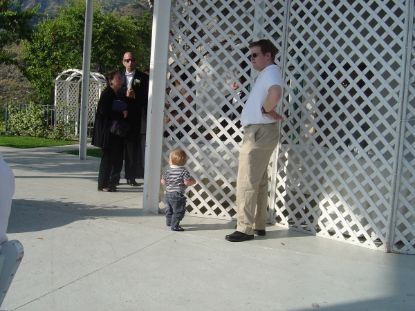 Donovan gets tired of waiting for the festivities to begin, and wanders off toward the groom.