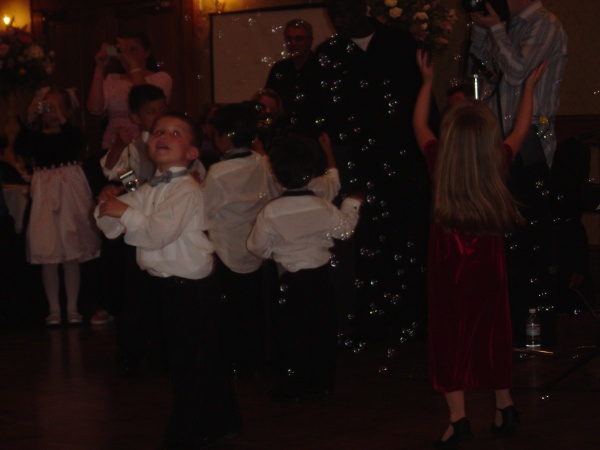 Closeup on kids enjoying bubbles.