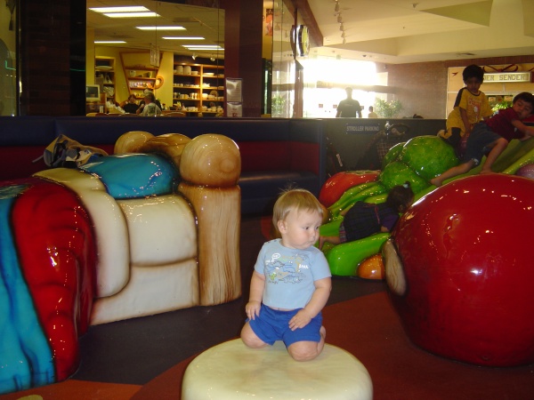 However, then he couldn't figure out how to stand up or get down. Daddy lurks in the background, silhouetted by a halo.
