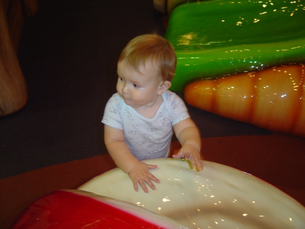 Donovan contemplates cheating on the giant apple with another attractive piece of play equipment.