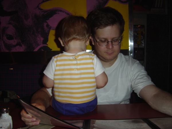 Daddy reads the menu. Donovan reads the daddy.