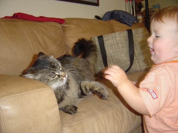 As the cat gains the higher ground, Donovan springs to his feet!