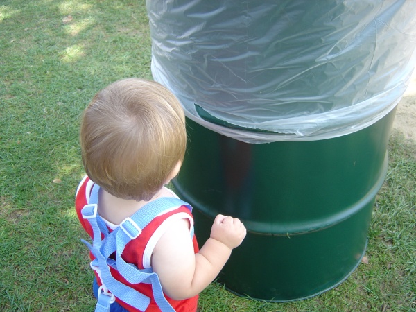 Donovan thinks about going for a swim in the murky garbage of the Green Trash Bin.