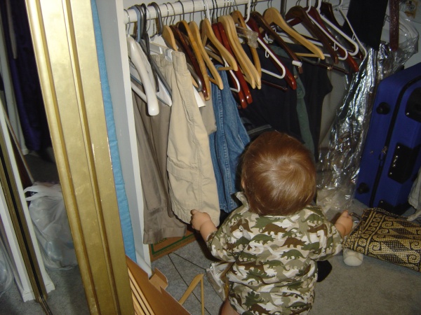 "Hmmm, which of daddy's clothes will I chew on today..."