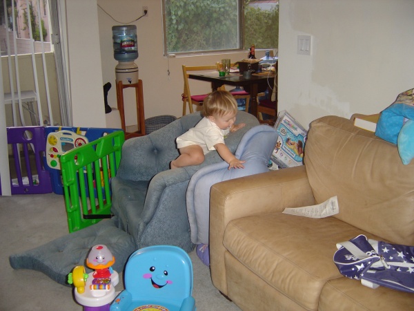 He also explored climbing from the chair onto the couch, but that didn't work out so well.