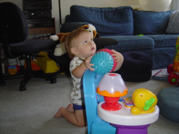 "What, Mommy? Can't you see I've got my hands full?"