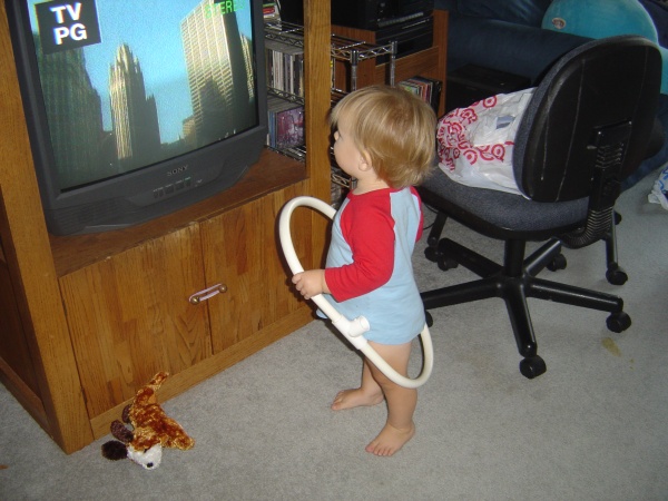 Donovan's gotten very interested in the television lately. He'll be horrified when we procure and install the button shield we've ordered.