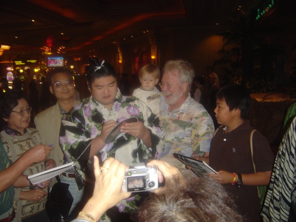 Donovan and Lanny horn in on the autographing action. Actually, I don't think the sumotori even knew they were there.