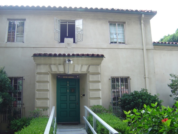 Comments: The Social Services wing of the Church of the Blessed Sacrament. The address appears to be 666. (Actually, someone stole the "3" that would have made it "6636," but... heh.)