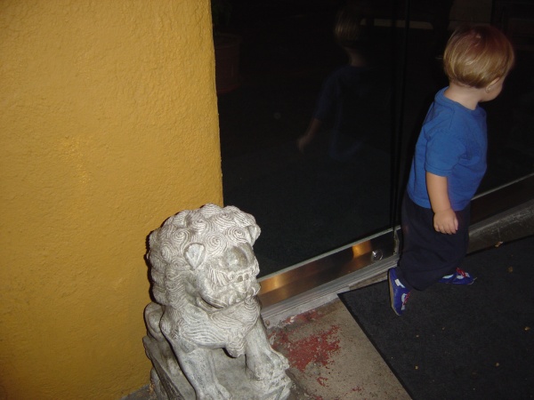 A moment before this photo was taken, Donovan was petting the concrete lion. Of course, he claims an alibi.