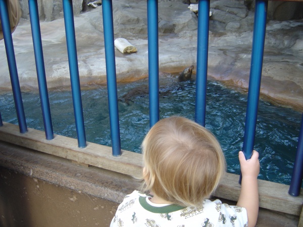 Donovan initially ran to this exhibit because of the waterfall, but then got distracted by the sea lions.
