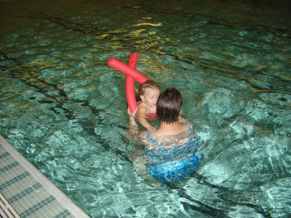 "Kick your feet, splash your hands, grab mommy's neck..."