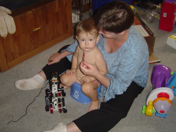 Hard to see in this photo, but Donovan had a big red candy-cane smile on his cheeks.
