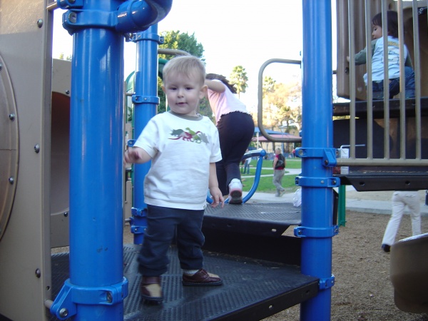 Comments: Lately Donovan has been interested in playing on the big equipment. He's getting very good at climbing. Every time we're there, some parent with a kid twice his age is gobsmacked that he can do the ladder-things by himself, since theirs can't yet. Taken: Friday, January 6th, 2006 at 14:18:37 Pacific