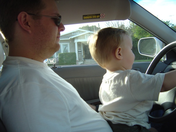 It's never too early to learn to drive. So long as the ignition is off and the emergency brake is on.