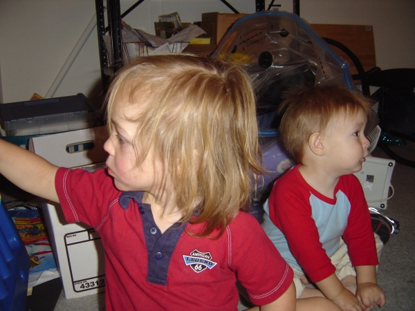 Donovan and Kezian studiously ignore each other. (They were looking at each other when I pressed the button...)