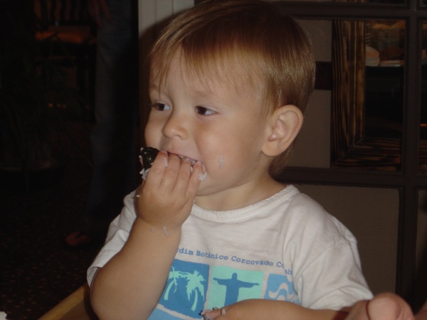 Even stripped down to the basics, they don't quite fit in his tiny baby mouth. He tries valiantly anyway.