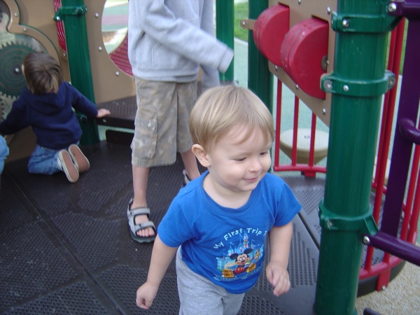 Donovan thoroughly enjoys the colossal play structure at this park.
