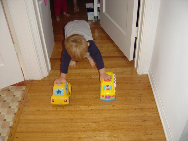 Donovan comes up with a new method of locomotion. Two feet, two cars.