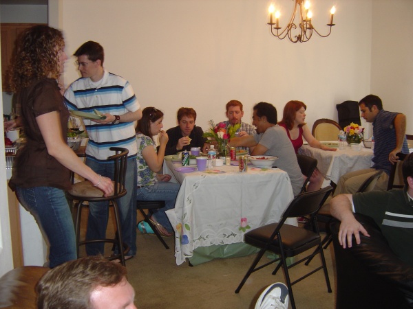 Comments: Party! Michelle, Teddy, Rachel(?), Tony, Kevin, Steve, Unknown, Unknown. Foreground: parts of Dan, Adam.