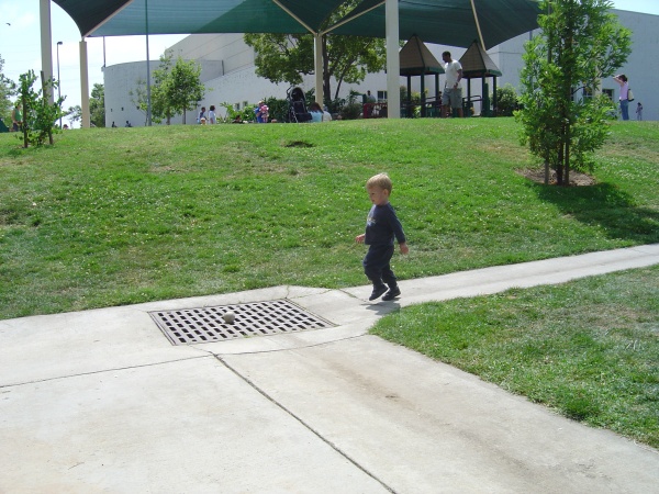 "Whew! We're lucky the ball didn't go down the drain."