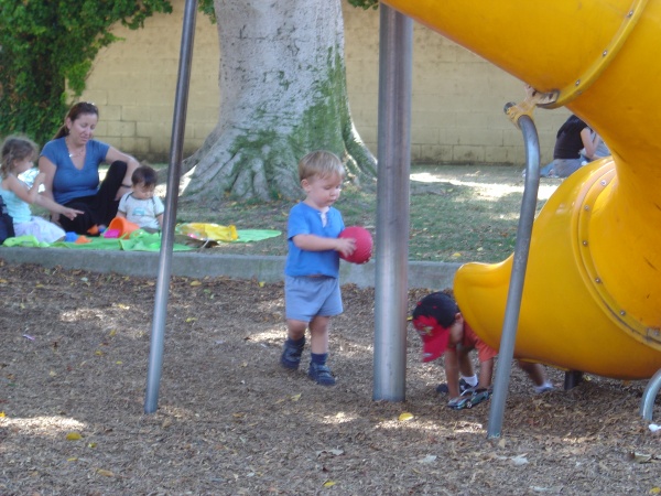 Although Donovan doesn't actually like going down the big slide at WeHo Park, he does like the tube that occasionally ejects kids.