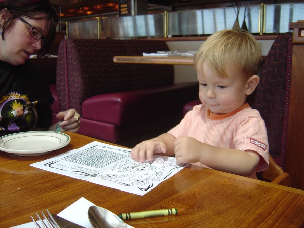 Donovan and crayons at Eliot's Oyster Bar.