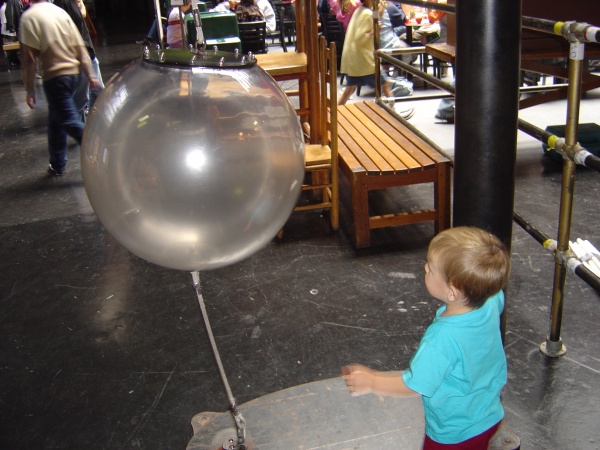 Donovan explorators a giant transparent ball with a metal marble inside.